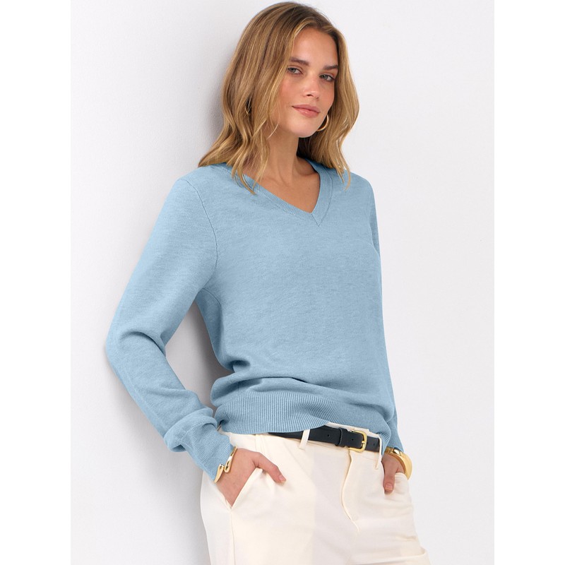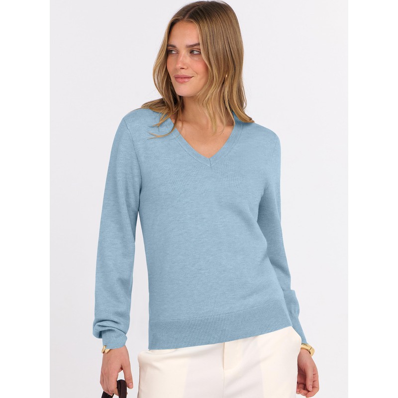 - Features - The V neck pullover sweater, designed with subtle ribbing cuffs and hem for a sleek look. Its lightweight yet warm material makes it perfect for layering with jeans, leggings, coats, jackets or boots. The long sleeve vneck sweaters is best choice for any season, and suit for dating, office work, school, daliy shopping and weekend.