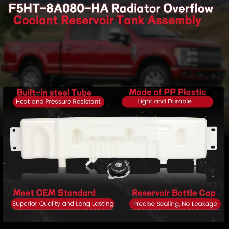 - 【Wide compatibility】 The radiator overflow bottle is compatible with multiple Ford truck models, including: Ford F-Series (medium-duty trucks): F600, F700, F800, F900 (1980-1999 models) / Ford L-Series (heavy-duty dump/tractor trucks): F7000, F8000, F9000 (1980-1999 models) / Ford B Series (buses): B600 (1980-1990 models), B700, B800 (1980-1998 models) Replacement part numbers: F5HT-8A080-HA, F6HZ-8A080-B, F5HZ-8A080-C, F3HT-8A080-AA