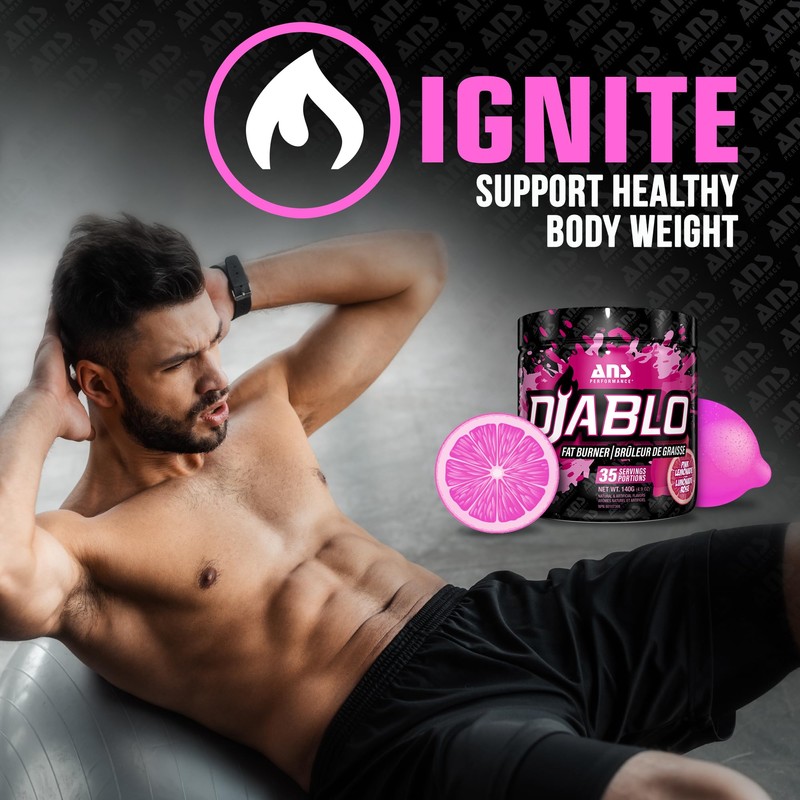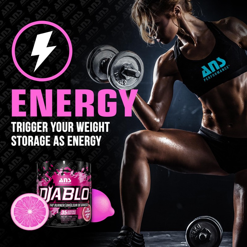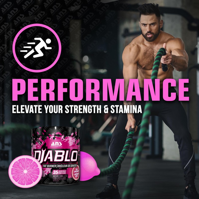 ANS Performance Diablo (35 Servings, 4.9 oz) - Energy Powder for Elevated Strength & Stamina - With Added Kinetq, Garcinia, L Carnitine - Thermogenic Formula - Delicious Flavours (Pink Lemonade))