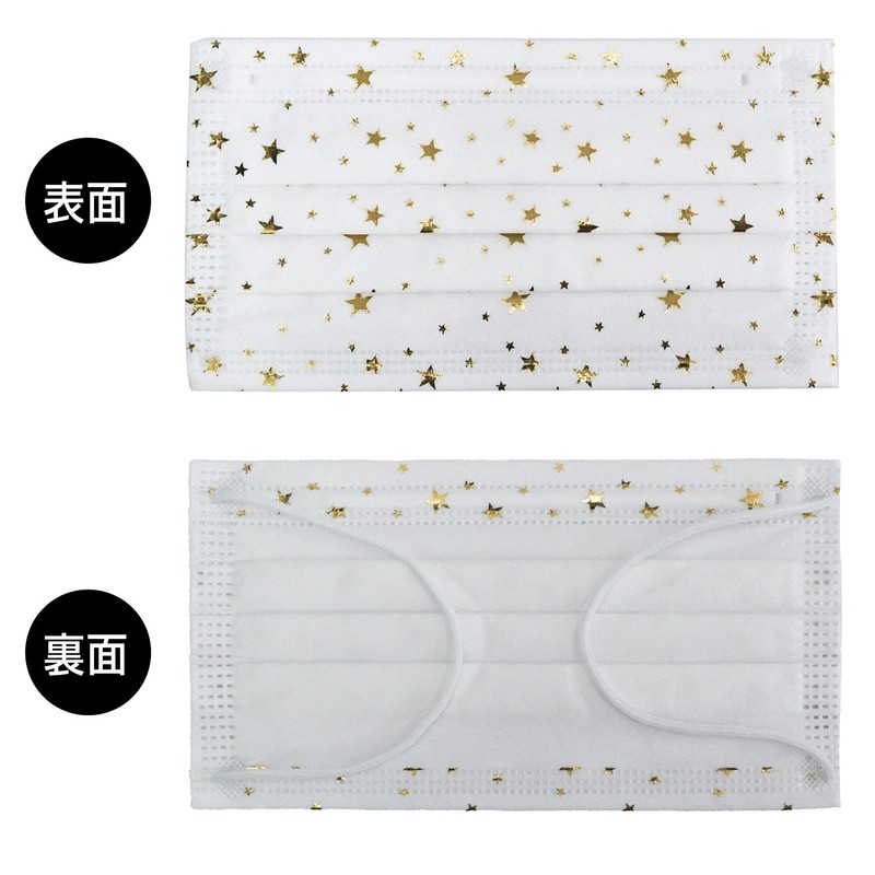 ■Star Pattern White Mask, Sparkly Gold (Gold), 4 Layers, Non-woven Mask, Unisex, Individually Wrapped Over 99% PFE.