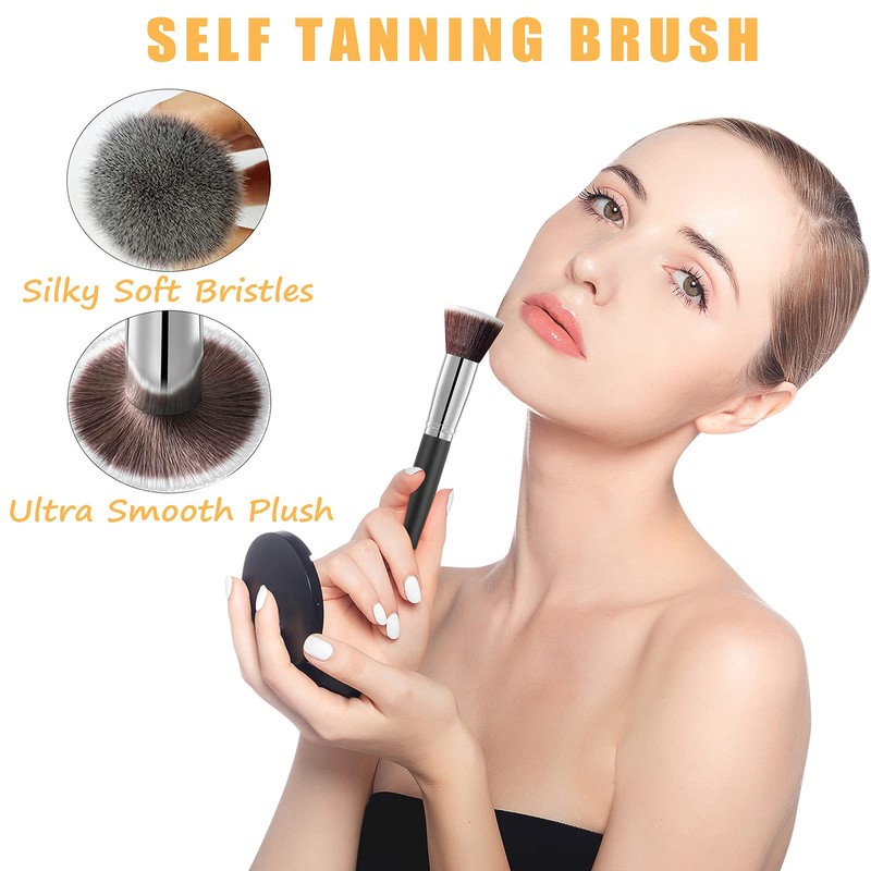 • With soft bristles and a flat top, self tanner brush can help to reach blend areas like foot ,toe, hand, face, effectively avoid uneven self tanner and get most natural-looking tan possible. It work for all kinds of tanning products such as mousse, lotion, spray, and foam. (Not good for liquid tanner)