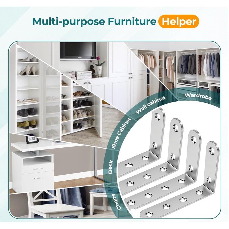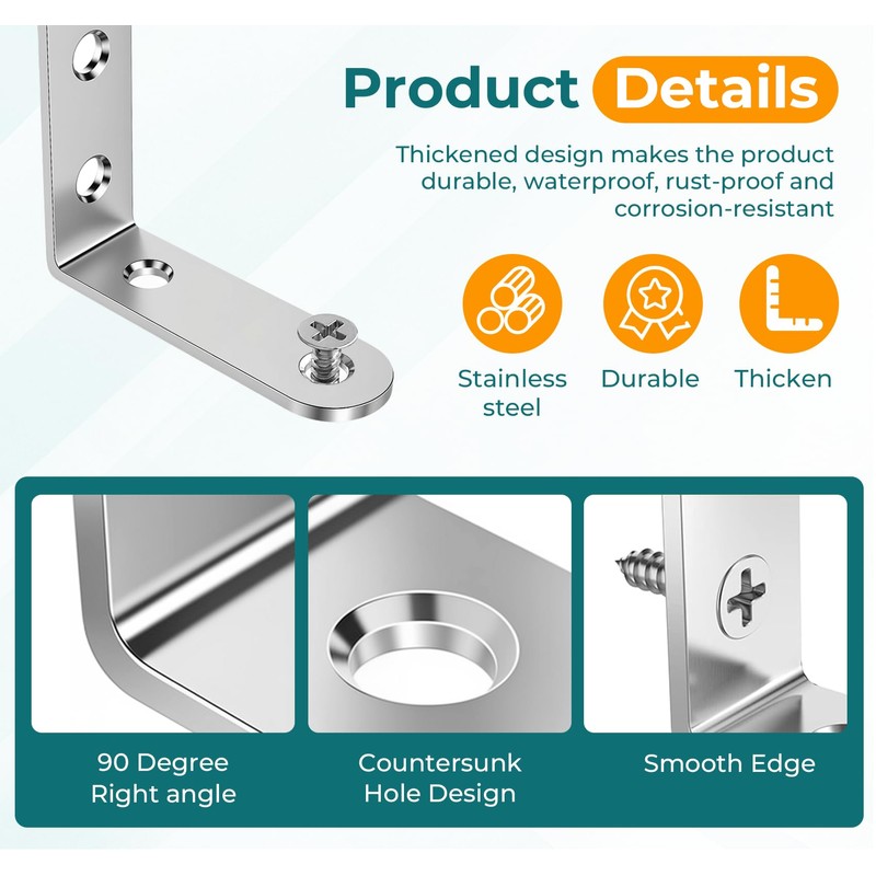 - Extensive accessories for easy installation: 4 pieces 6-hole angle stainless steel plus 30 screws - this means sufficient material for precise fixings without stress! The extra screws allow flexible work and ensure a safe installation, even if screw loss occurs.