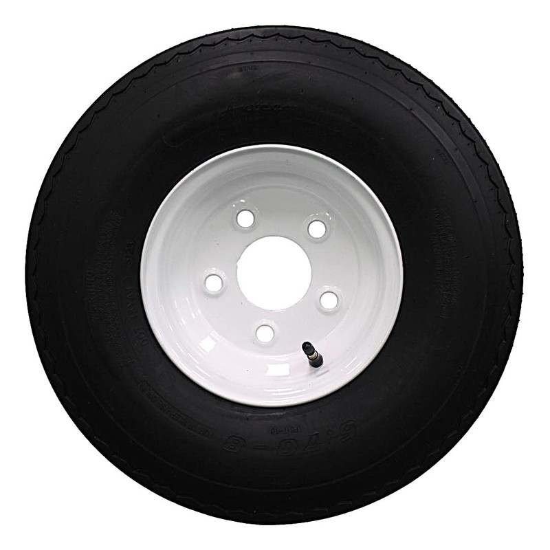 Antego Tire and Wheel (Set of 1) 5.70x8 Trailer Tire and Wheel Assembly, White 5 Lug Trailer Tire and Wheel, 6 Ply, Load Range C