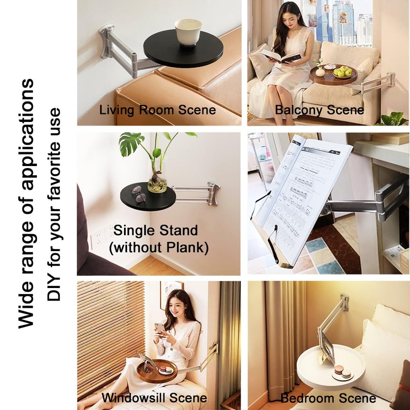 • BEDSIDE SHELF WALL MOUNT EXTENDABLE AND VERSATILE: Couch arm table wall mounted retractable brackets expands from 3.15 in to 15.7 in for an overall length of 15.9 inches,Wall narrow end table folding bracket and can be used as a side table,a small folding table for RVs,Mini coffee table or a makeshift shelf,Circle side table retractable brackets to fit a variety of needs