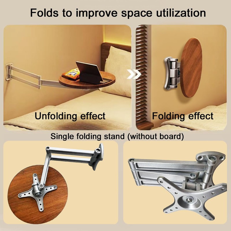 • WALL BRACKETS FOLDABLE DESIGN: Over bed table folding brackets foldable when not in use,Bedside shelf wall mount rotatable folding bracket perfectly solving space constraints in small apartments,RVs,And other compact areas,Maximizing space efficiency,Pedestal side table hinges combining style and practicality