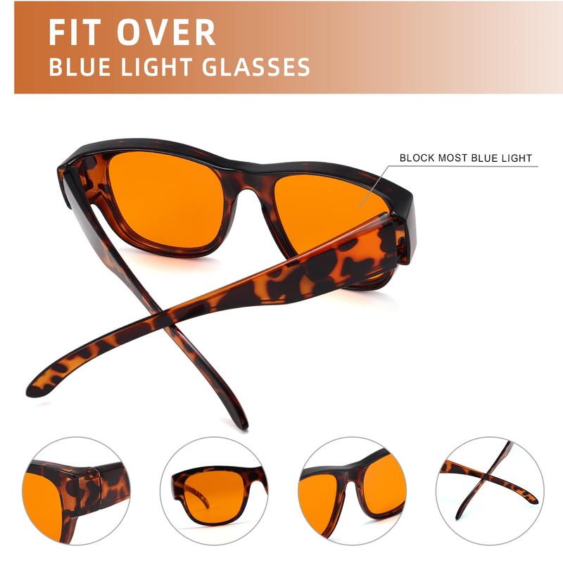 - Eyekepper - anteojos azules para colocar sobre anteojos, incluye una funda con cierre EVA, una bolsa de microfibra y un paño suave de limpieza, anteojos de computadora con bloqueo de luz azul superior que reducirán la tensión ocular cuando se trabaja en un computadora, tablet, teléfono o televisión. Excelente para aliviar las molestias visuales y la fatiga asociadas con el uso de un computadora durante largos períodos de tiempo.