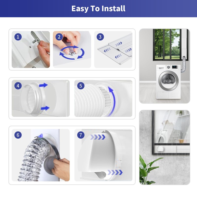 • Extensive Compatibility & Advanced Rain CoverOur portable dryer vent window kit boasts unparalleled versatility, fitting 4 inch diameter hoses, making it a perfect match for numerous windows. Innovatively, it includes a rain shield for outdoor installation, effectively barring rainfall and debris entry.