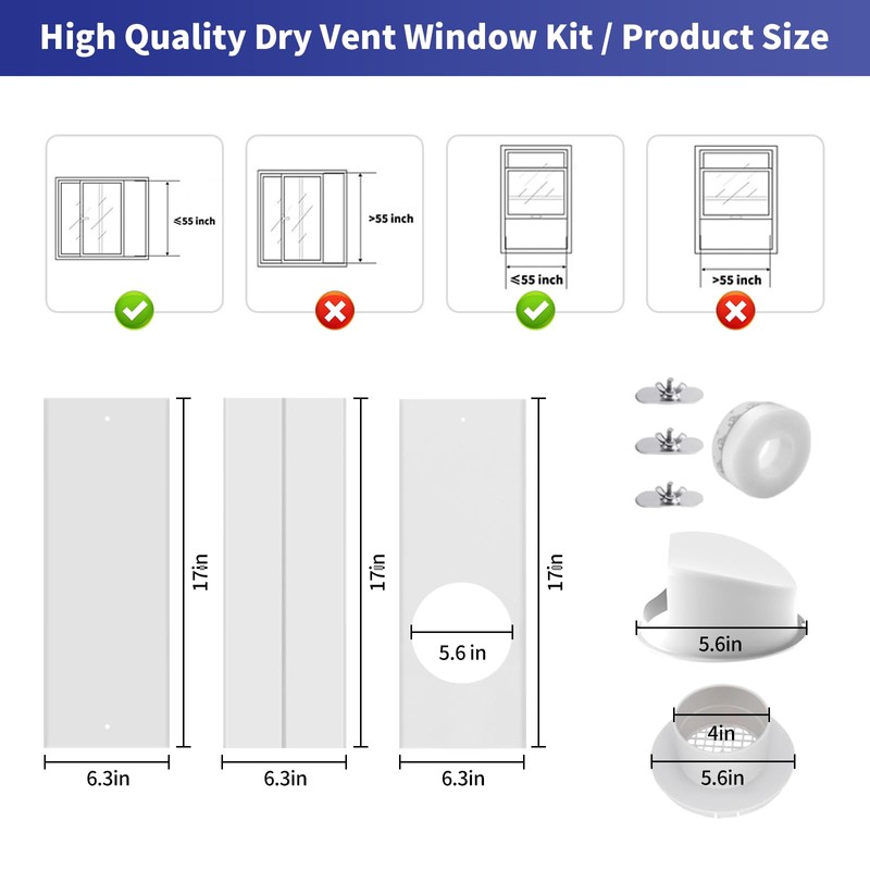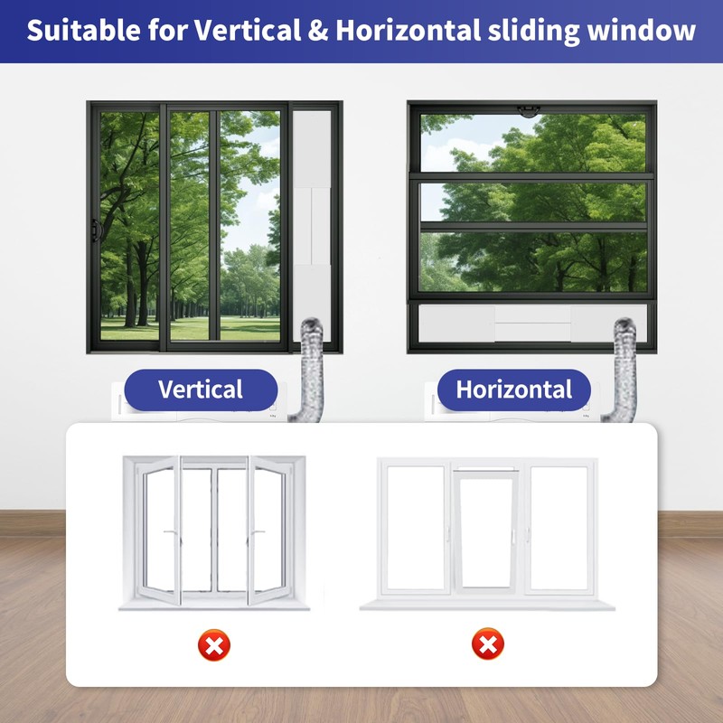 • Good Sealing EfficiencyGoing beyond conventional designs reliant on tape for sealing gaps, our upgraded window dryer vent kit ensures a precise, gap-free fit within window tracks. This sealing technology assurances cooling efficiency, maintaining a consistently refreshing indoor environment.