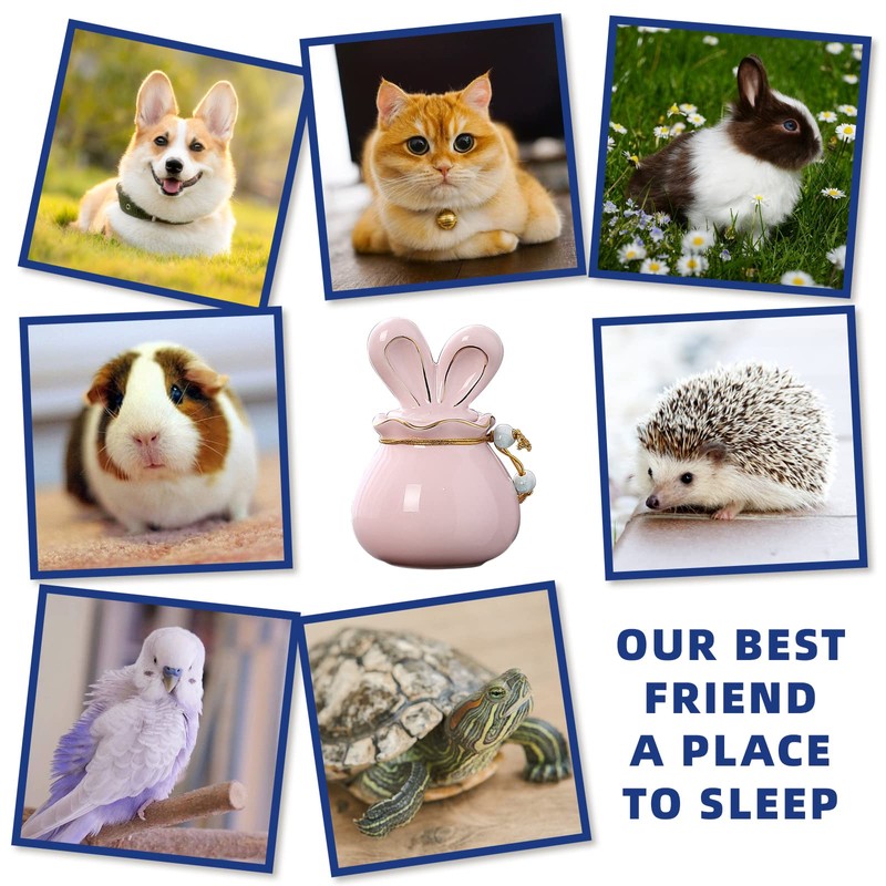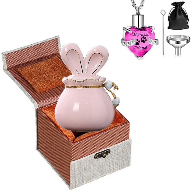 ANTESCORT Ceramic Small Cremation Urn for Pet Ashes with Rabbit Ear Design,includes Velvet Bag and Urn Necklace,Keep Your Beloved Pet Close to Your Heart Forever with This Decorative Mini Urns (Pink)
