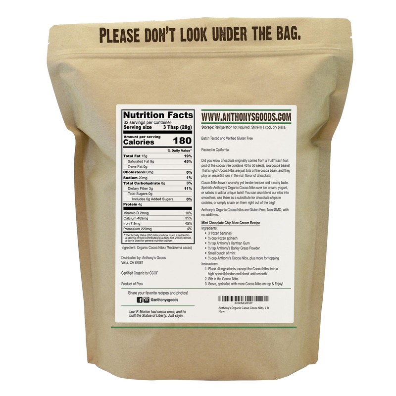 Anthony's Organic Cacao Cocoa Nibs, 2 lb