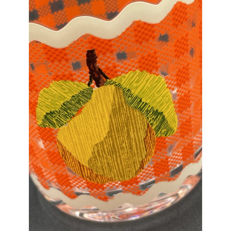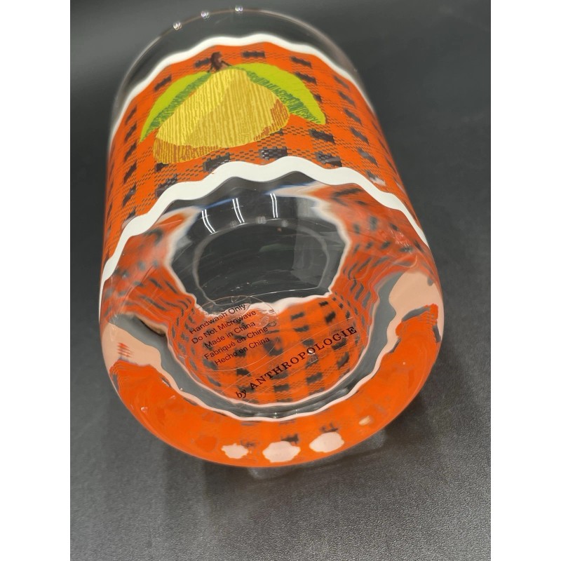 Anthropologie Ischia Gingham Fruit Juice Drinking Glass Orange Pear 4" New