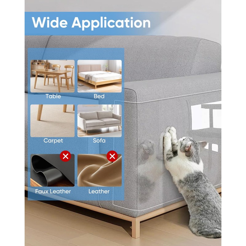 - 【Durable & Enhanced Protection】Our cat scratch furniture protector goes far beyond the standard 0.06mm thickness with a tough 2mm design that can withstand even the sharpest cat claws. It protects your beloved pieces of furniture and saves them from unsightly scuffs and scratches, keeping them in pristine condition.