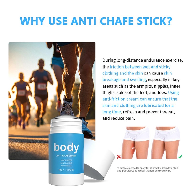 Multiple Applications: Anti chafing stick for women and men,applicable for multiple body parts: Thighs, chest, arms, feet, elbowsand places where skin rubs skin.