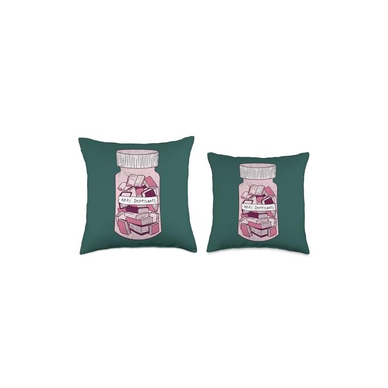 Anti-depressants Book Reading Reader Cute Funny Retro Throw Pillow, 16x16, Multicolor