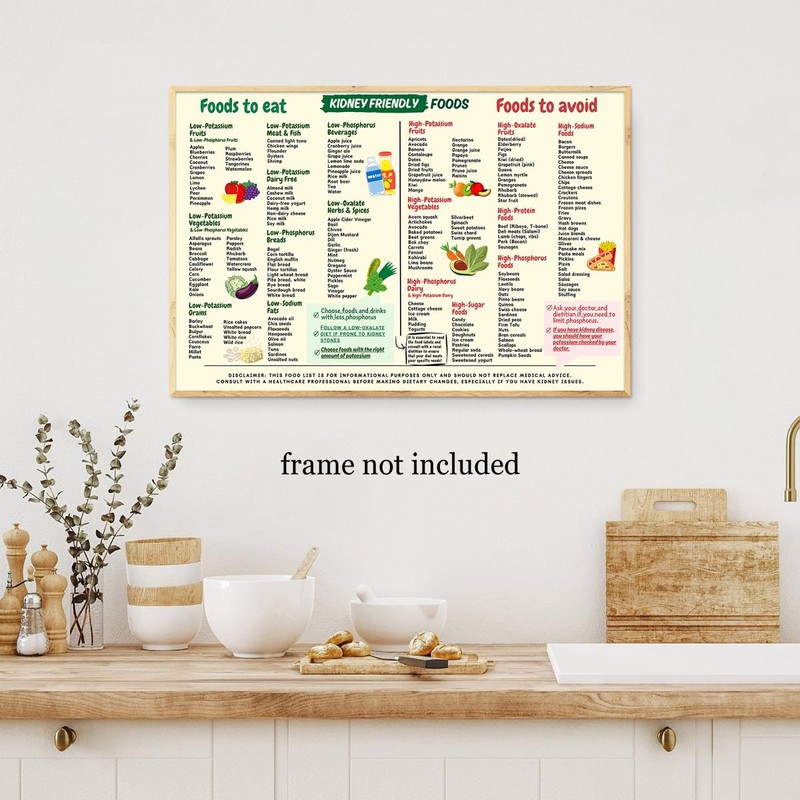 - 【Stylish Wall Decor for Your Kitchen】: Enhance the aesthetic appeal of your kitchen with our art canvas poster. Featuring vibrant colors and a tasteful design, it adds a touch of sophistication while also serving as a practical reference for your Mediterranean diet journey.