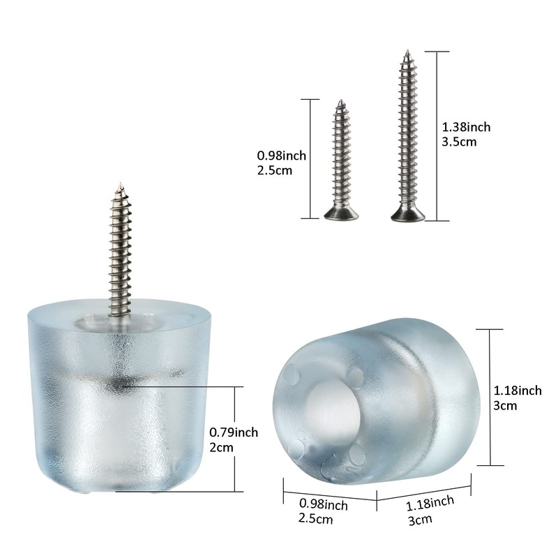 - Transparent size: 30 x 25 x 30 mm / 1.18 x 0.98 x 1.18 inches (L x W x H), best for 25-30 mm table legs. 8 rubber furniture feet + 16 screws (25 mm/35 mm)