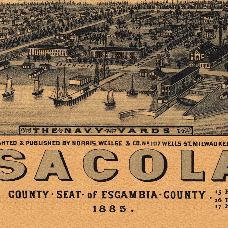 Antiguos Maps - Bird's Eye View Map of Pensacola Florida, Escambia County Circa 1885 - Measures 24 in x 36 in (610 mm x 915 mm)