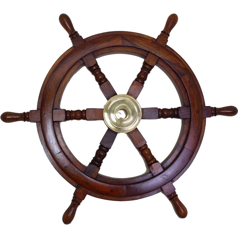 - Wooden ship steering wheel with brass hub