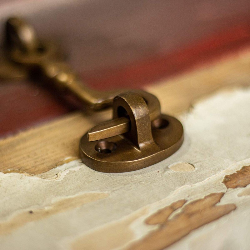 A beautiful drop hook for shutters and doors. The hook, made of high-quality brass, is ideal for locking hatches, doors and windows. So it is impossible to open them from the outside.