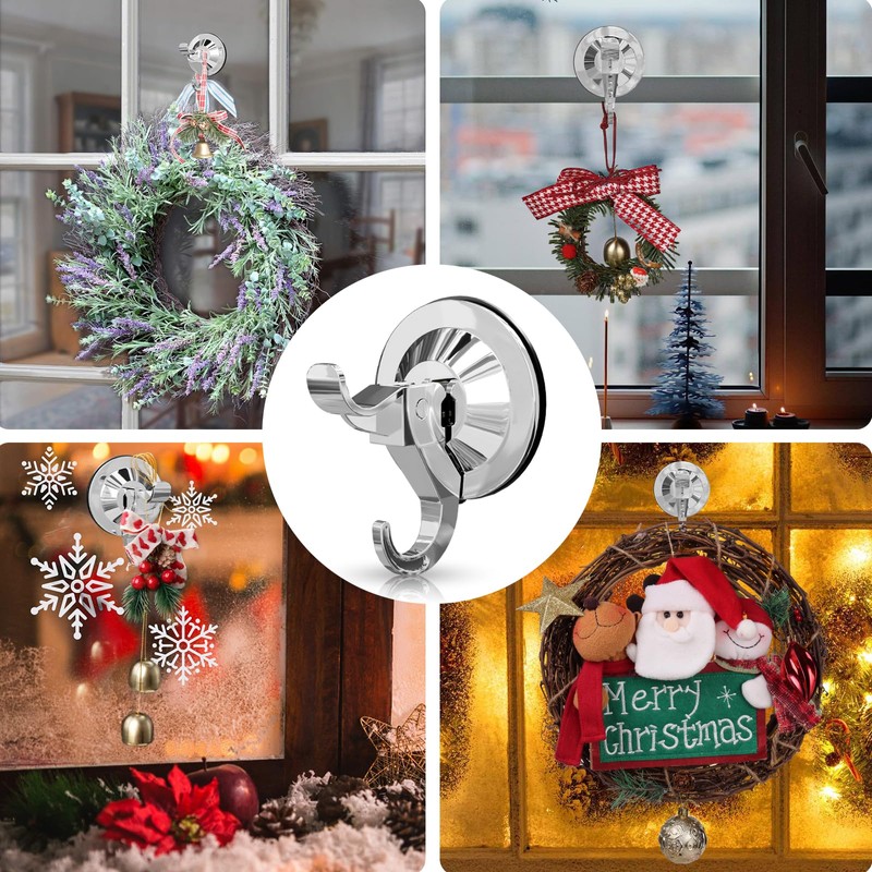 - 【Durable & Stable】No rust, no deformed, no yellow. The high-quality hard plastic and brushed surface give the holders great durability and stability. The suction cup hook is anti-hot-water max 158°F, keeping stable when showering hot water. You can use it to hanging bath sponge, towel, robe, brush, clothes and more.Can also be used on outdoor glass windows Christmas wreath hanger.