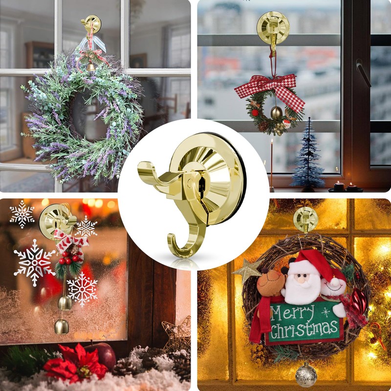 - 【Durable & Stable】No rust, no deformed, no yellow. The high-quality hard plastic and brushed surface give the holders great durability and stability. The suction cup hook is anti-hot-water max 158°F, keeping stable when showering hot water. You can use it to hanging bath sponge, towel, robe, brush, clothes and more.Can also be used on outdoor glass windows Christmas wreath hanger.