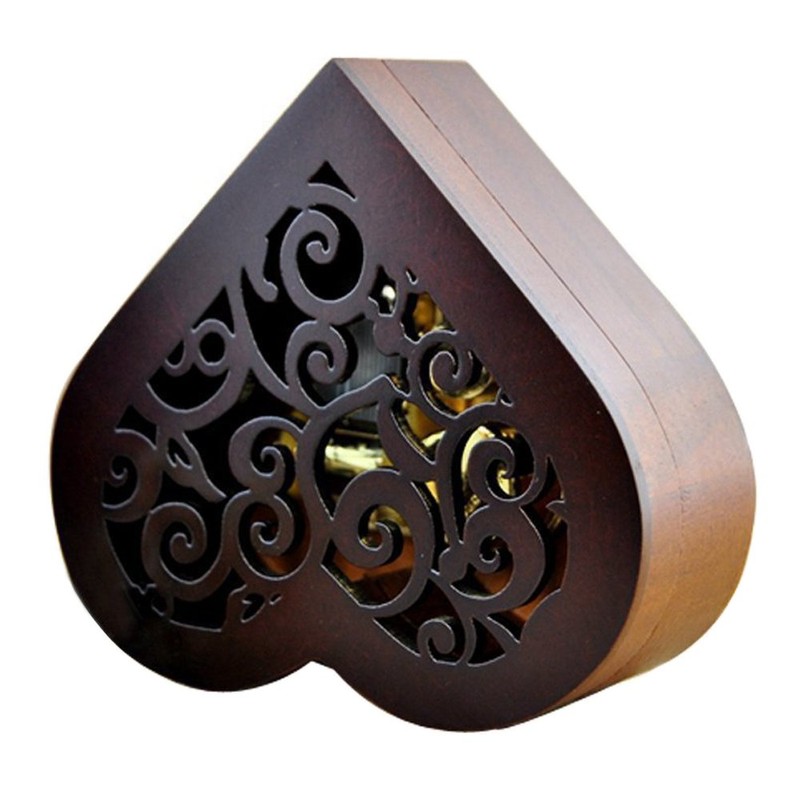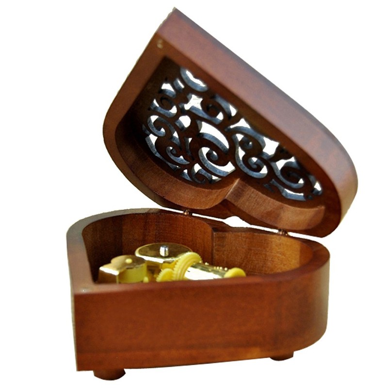 Antique Engraved Wooden Wind-Up Musical Box,Love Story Musical Box,with Gold-Plating Movement in,Heart-Shaped