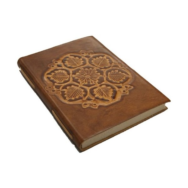 Antique Italian Leather Brown Leaves Lined Journal (Size 6" x 8")