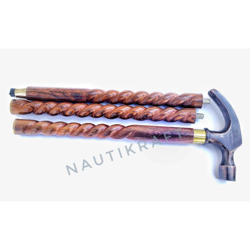 Antique Wooden Walking Cane Stick with Unique Brass Hammer Head Handle, Versa...