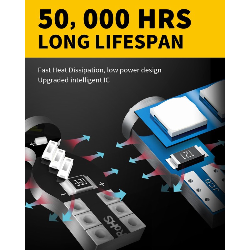 - 50,000HRS LIFESPAN: Full aluminum body design for quicker heat dissipation. 1.2W/Bulb low energy consumption for stable performance, extends lifespan up to 50,000hrs.