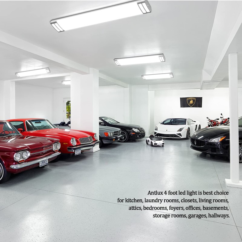 - HASSLE-FREE INSTALLATION: Attach fixture to ceiling, connect wire correctly, come withe the user manual and mounting hardware for fast and easy installation. Antlux 4 foot led light is ideal for kitchen, aundry rooms, closets, living rooms, attics, bedrooms, foyers, offices, basements, storage rooms, garages, hallways.