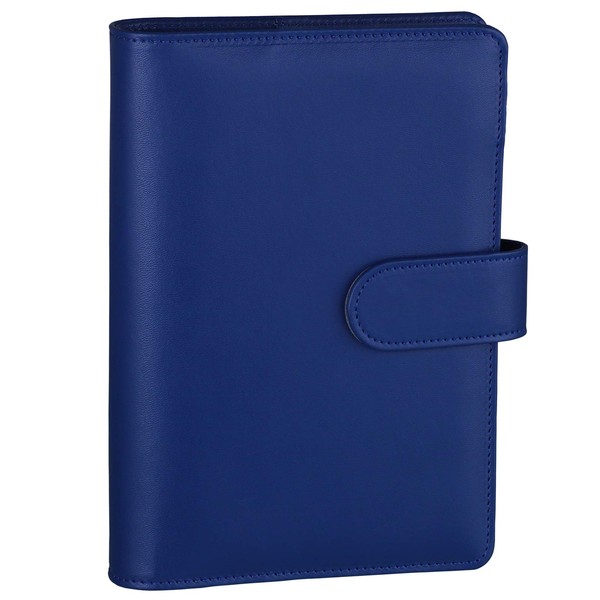 Antner A6 PUレザー バジェットバインダー 詰め替え可能 6リング ノートブックバインダー A6リフィルペーパー用 ルーズリーフ パーソナルプランナー バインダーカバー 磁気バックル留め ネイビーブルー