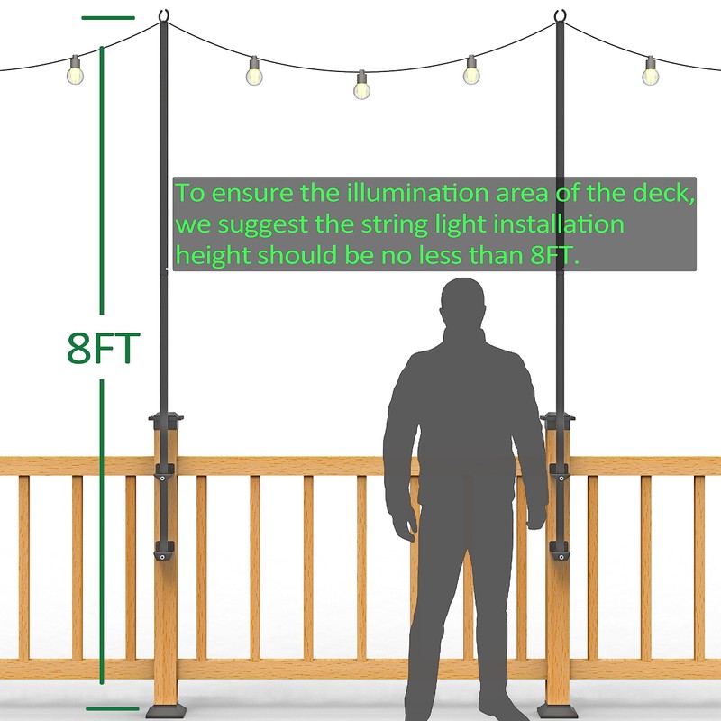 Antsky 2 Pack Stainless Steel String Light Deck Railing Holder Pole with SS Screws for Wood Posts, 6.5FT, Outdoor(Black Finish)