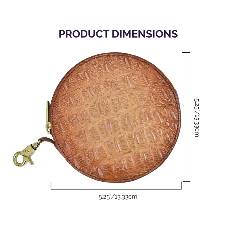 Anuschka Women's Hand Painted Genuine Vegetable Tanned Leather Round Coin Purse - Zip Closure, Attached Dog Hook, ID Window, African Adventure, One Size