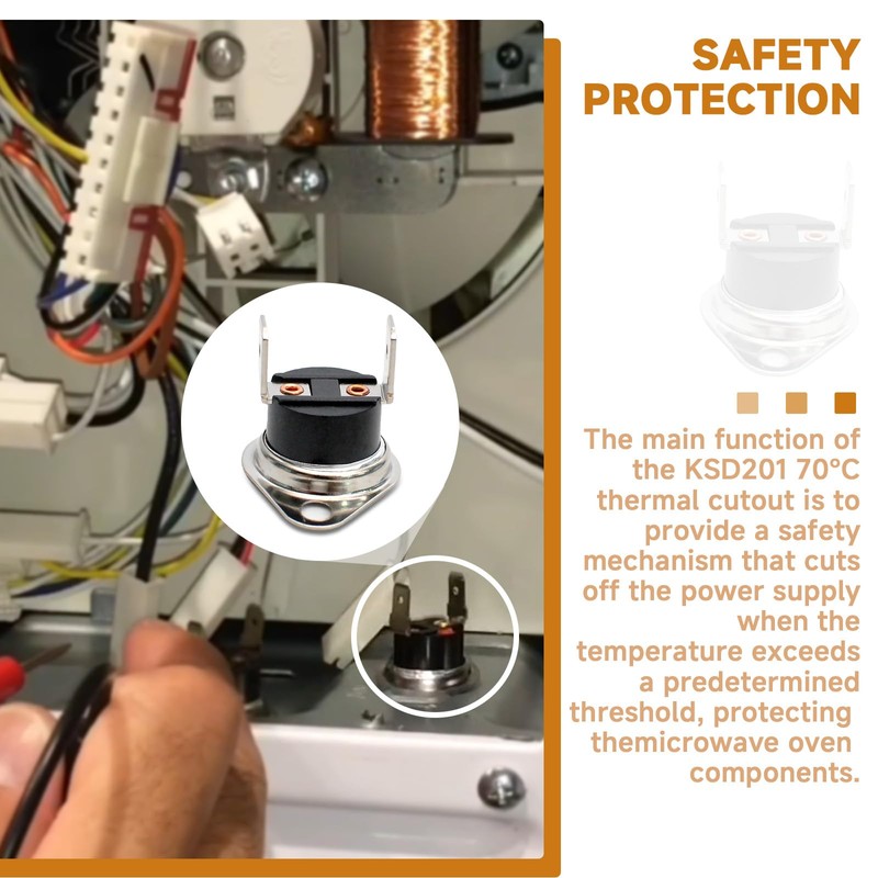 - Product Introduction: KSD201 70 degree normally closed temperature control switch is compatible with GE microwave ovens, water heaters and other electrical appliance replacement parts.Providing a solution for temperature control in your various applications
