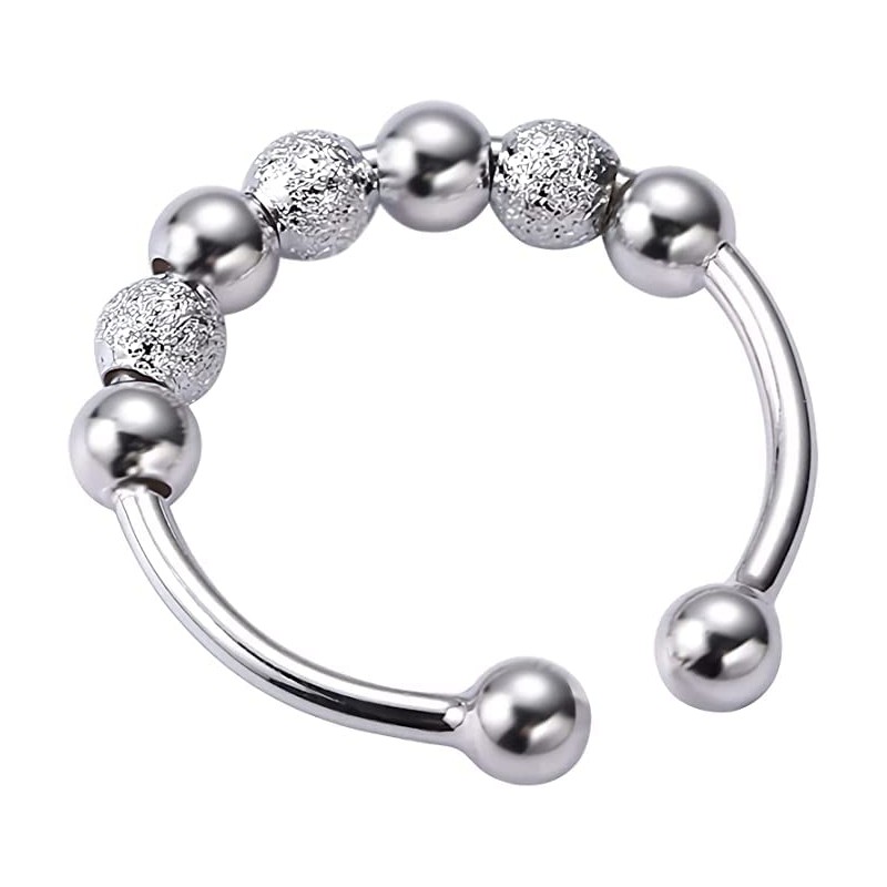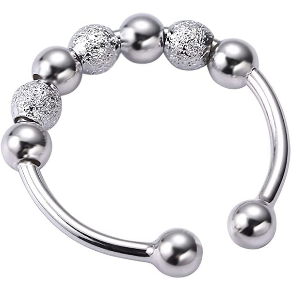Anxiety Relief Adjustable Silver Spinning Fidget Ring with 7 Beads (Silver)