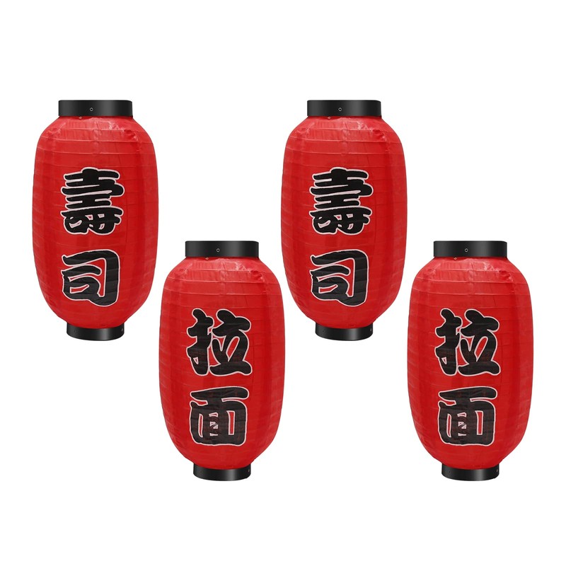 Anxingo 14 Inch Asian Lantern Lamps, Japanese Style Hanging Decor Silk Lantern, Traditional Hanging Lamp Bar Waterproof Festival for Indoor Outdoor Home Yard, Set of 4