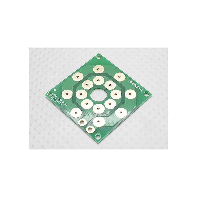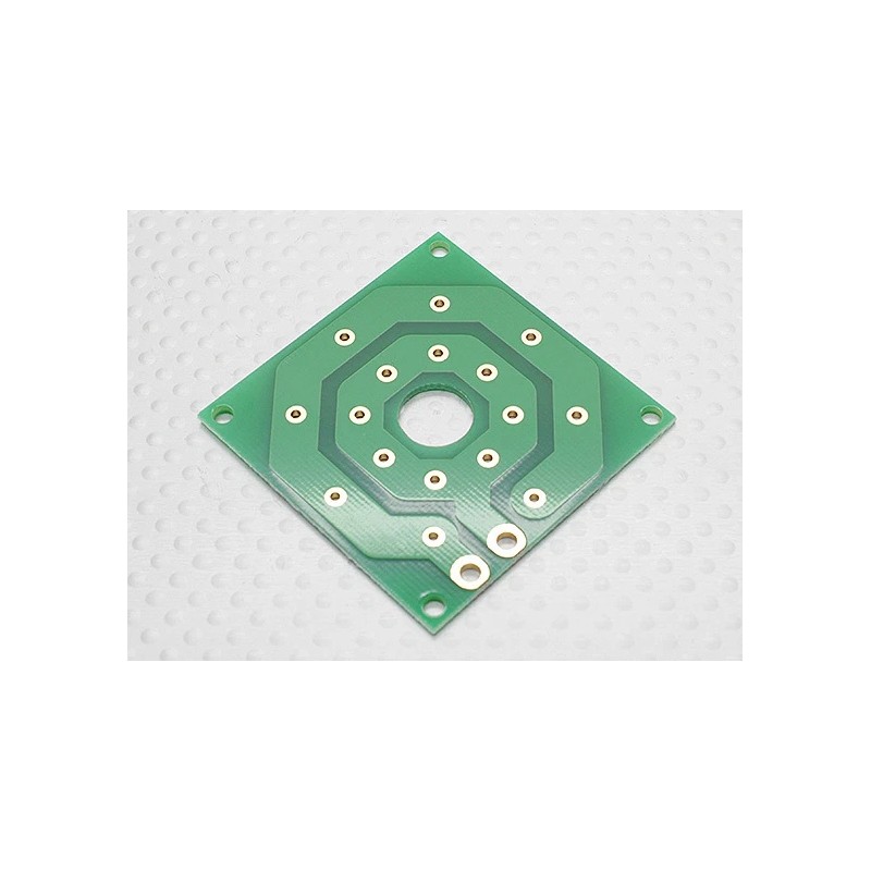 This handy power distribution board has the same foot print as our Multi-rotor control boards and is the ultimate solution for tidy power distribution wiring. Simply solder you power leads directly to the contact points on this board. The PCB contact points are gold plated for optimal efficiency.