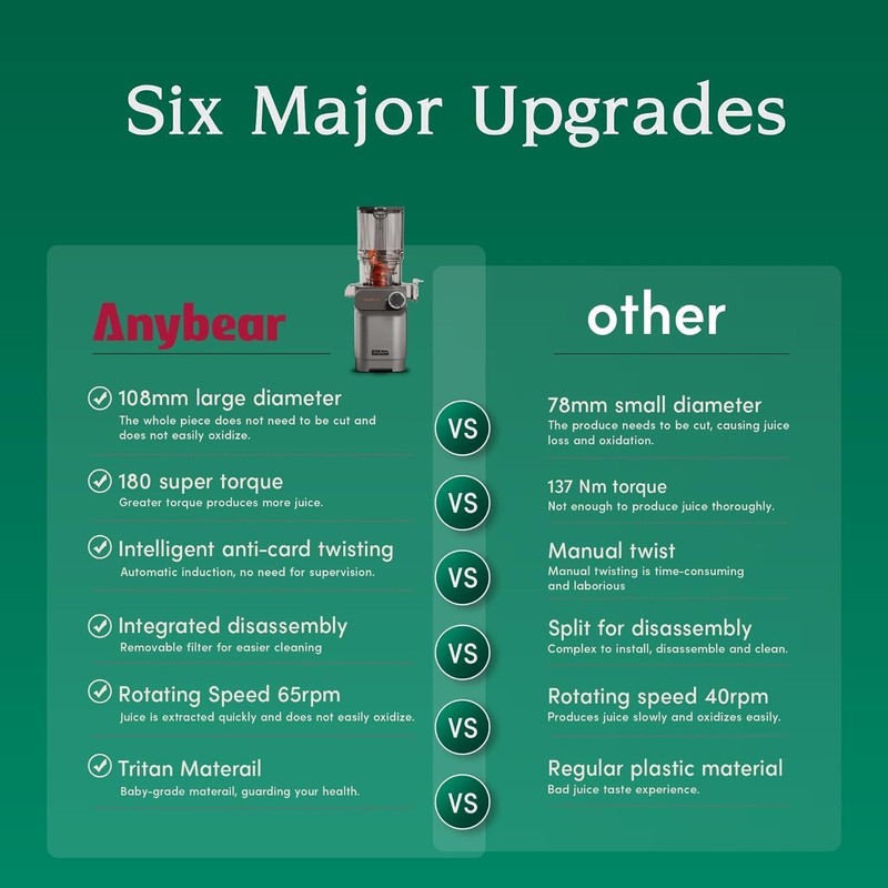 - 【Extra Benefit for You】 You will receive a diverse collection of juice recipes, streamline your juice routine effortlessly. Join Anybear in juicing and unlock a vibrant world of juice experiences.
