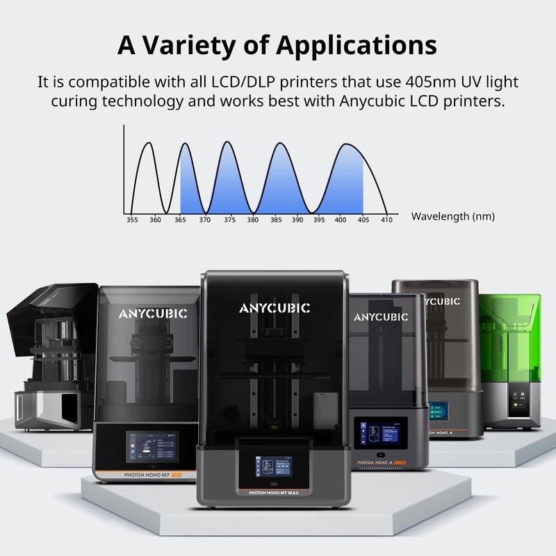 - 【A Variety of Applications】Anycubic Resin is compatible with a wide range of LCD and DLP 3D printers operating within the 365-405nm wavelength, our resin offers seamless integration with most printers on the market.