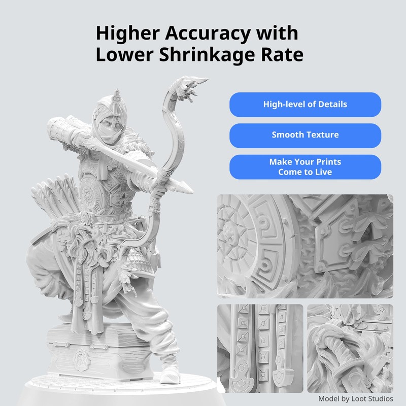 - 【Higher Accuracy with Lower Shrinkage Rate】 Anycubic 3D Printer Resin delivers an exceptional high level of details, capturing even the most intricate contours and delicate features, while ensuring a remarkably smooth texture that feels as polished as it appears—all coming together to make your prints truly come to life.