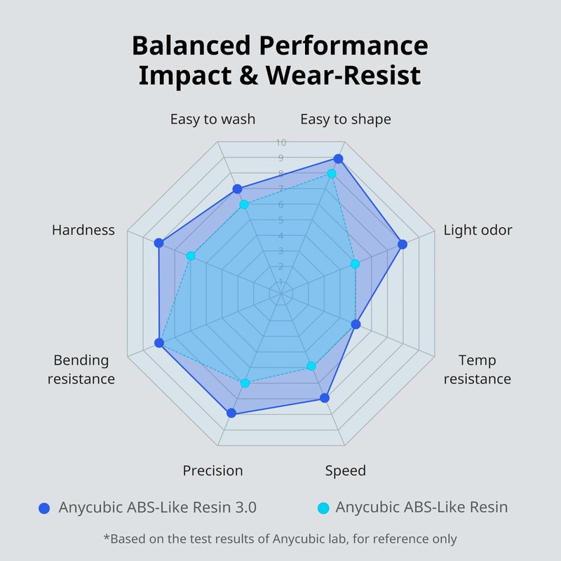 - 【Lower Viscosity for Faster Curing】 With lower viscosity and high fluidity, Anycubic ABS-Like Resin 3.0 reflows back to the print area more quickly,reducing overall print time.