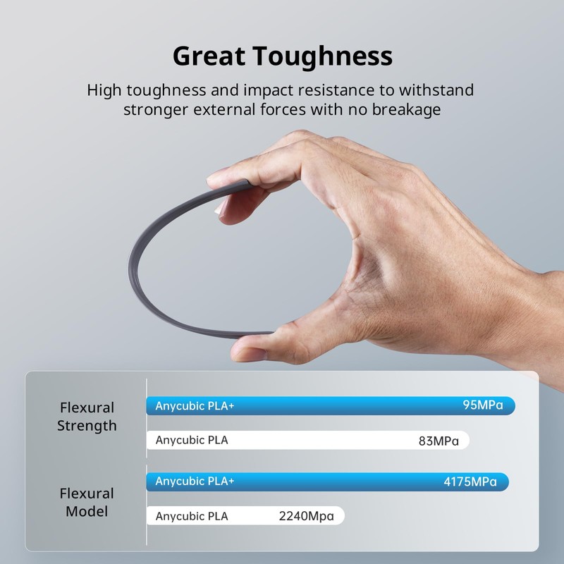 - 【High Toughness】Anycubic PLA Plus 3D Printer Filament is developed with high toughness and certain impact resistance, not easy to break when subjected to external force. At the same time prints smoothly with few layers, suitable for making models of handicrafts, artworks, engineering parts, and so on.
