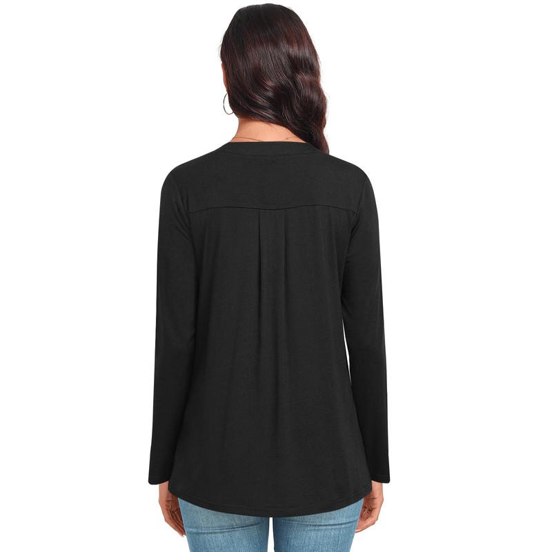 - Material: This womens long sleeve tunic tops is made of 61% polyester, 33% rayon, 6% spandex. The casual v neck tops is stretchy and breathable, lightweight and skin-friendly, relaxed and comfortable