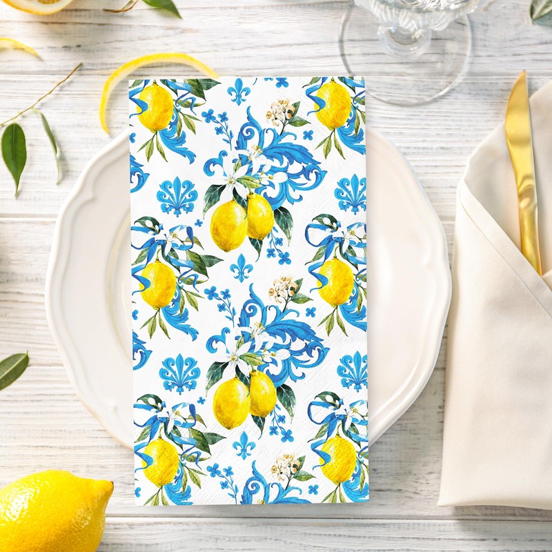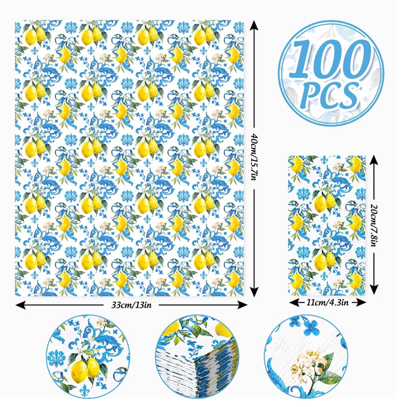 100 sheets guest napkins, patterned with exquisite lemons, full of fresh and elegance, suitable for many occasions.