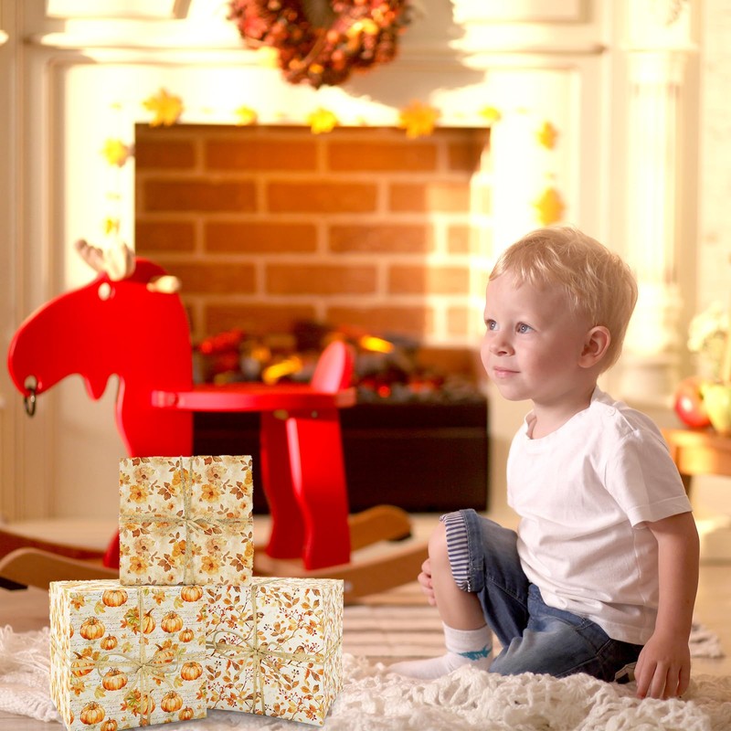 AnyDesign 8 Sheets Fall Wrapping Paper -Not Roll- Watercolor Pumpkin Leaves Flower Bird Gift Wrap Paper Folded Flat for Autumn Thanksgiving Party DIY Crafts, 19.7 x 27.6 Inch