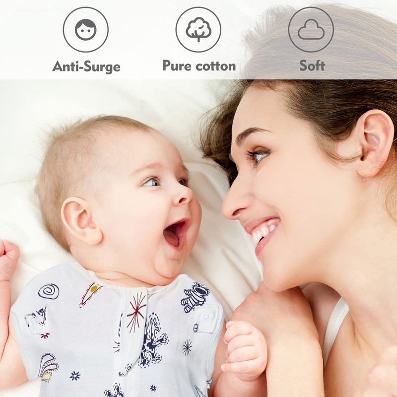 - Variey of Styles: ANYEDDE Baby Transition Swaddle Sleep Sack, Swaddle Transition Bag comes in 5 styles, 3 sizes, 100% cotton, 0.5 TOG, suitable for baby from 0-9 months, you can choose according to your baby's age and your preferences, you can follow our size figure to buy the right swaddle