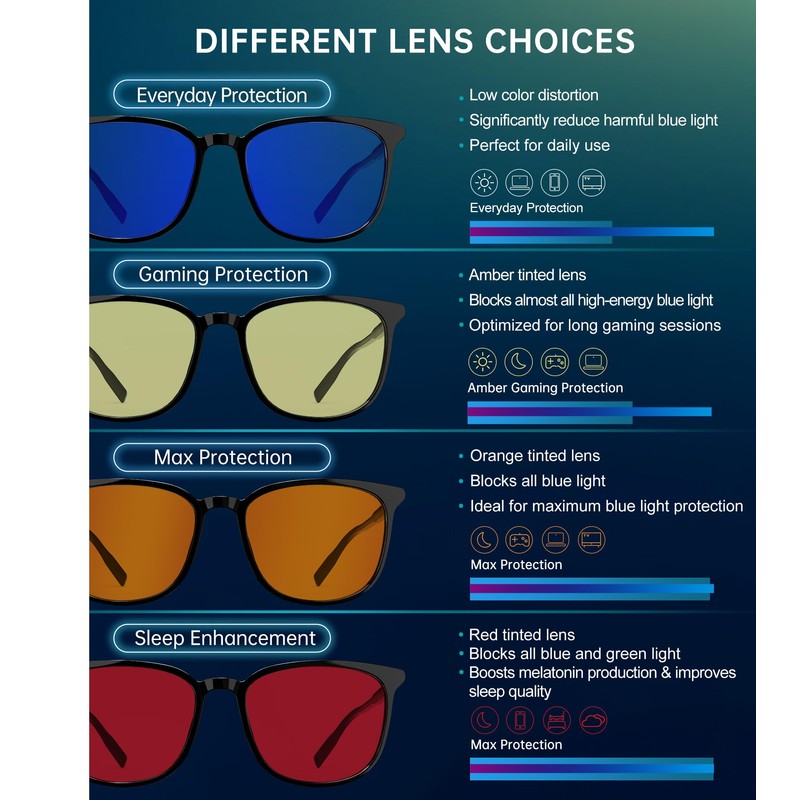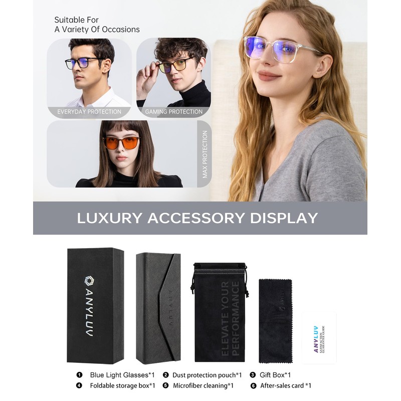 - 【Low Color Distortion Lens】Designed with high definition lens technology, ANYLUV's blue light blocking glasses for men achieve an optimal balance between eye protection and visual clarity. Unlike heavily tinted lenses, our low color distortion design ensures natural viewing quality while effectively reducing blue light exposure.