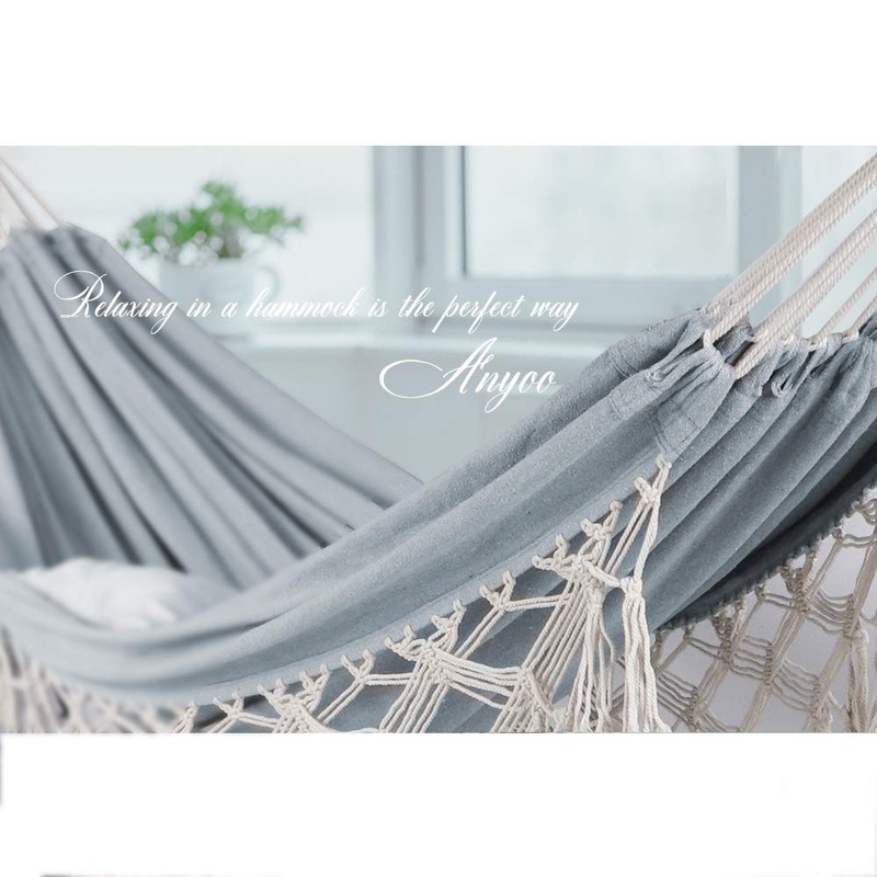 Anyoo Hammock Garden Cotton Hammock Comfortable Fabric Elegant Deluxe Tassels Durable Swing Hammock Up to 450lbs Portable Hammock with Travel Bag,Perfect for Porch Patio Yard Bedroom Outdoor/Indoor