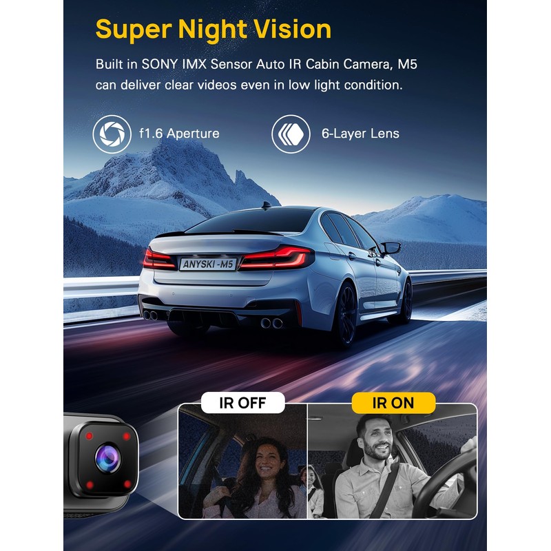 - 【Dash Cam Front and Rear Inside 1440P+1080P+1080P】 Equipped with Industrial leading SONY IMX sensor and processor, delivering smooth & detailed video (2.5K Front/1080P Inside/ 1080P Rear) to protect you from potential incidents & road disputes; the super night vision & Auto IR cabin camera can help obtain videos in good clarity even at dark light.