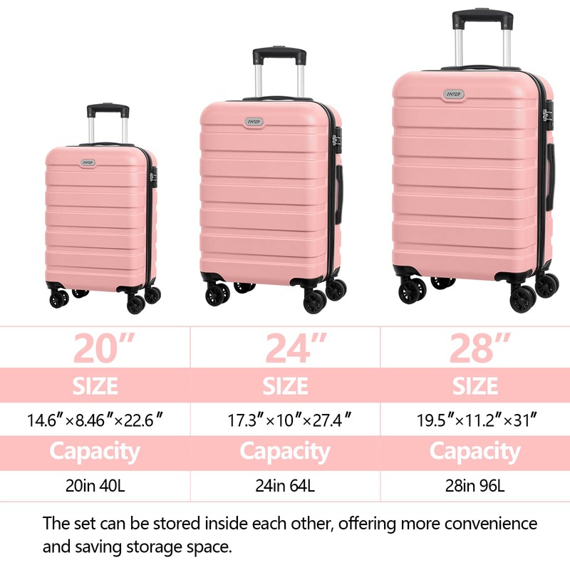AnyZip Luggage Sets 3 Piece PC ABS Hardside Lightweight Suitcase with 4 Universal Wheels TSA Lock Carry On 20 24 28 Inch Pink